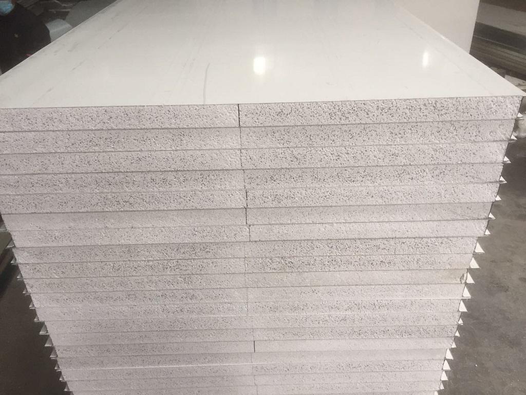 硫氧鎂夾芯板充分發揮了硫氧鎂復合材料的獨特性能,在防火,防潮,防脫膠,高強度,保溫,隔熱,吸音等方面有著顯著地優點及功效。 生產工...